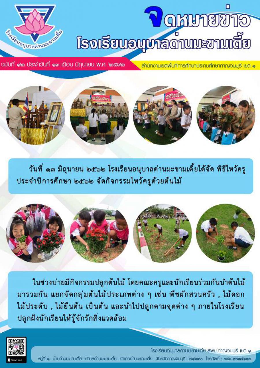 ฉบับที่ 12 วันไหว้ครู 13 มิถุนายน 62