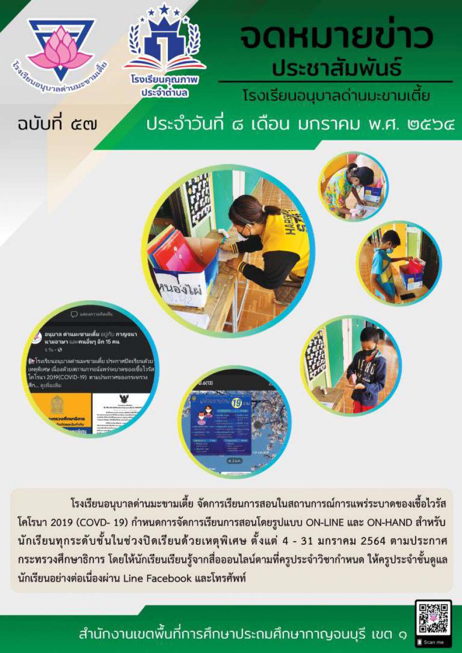 ฉบับที่ 57 การเรียนการสอน Covid 19 สัปดาห์ที่ 1 8 มกราคม 64